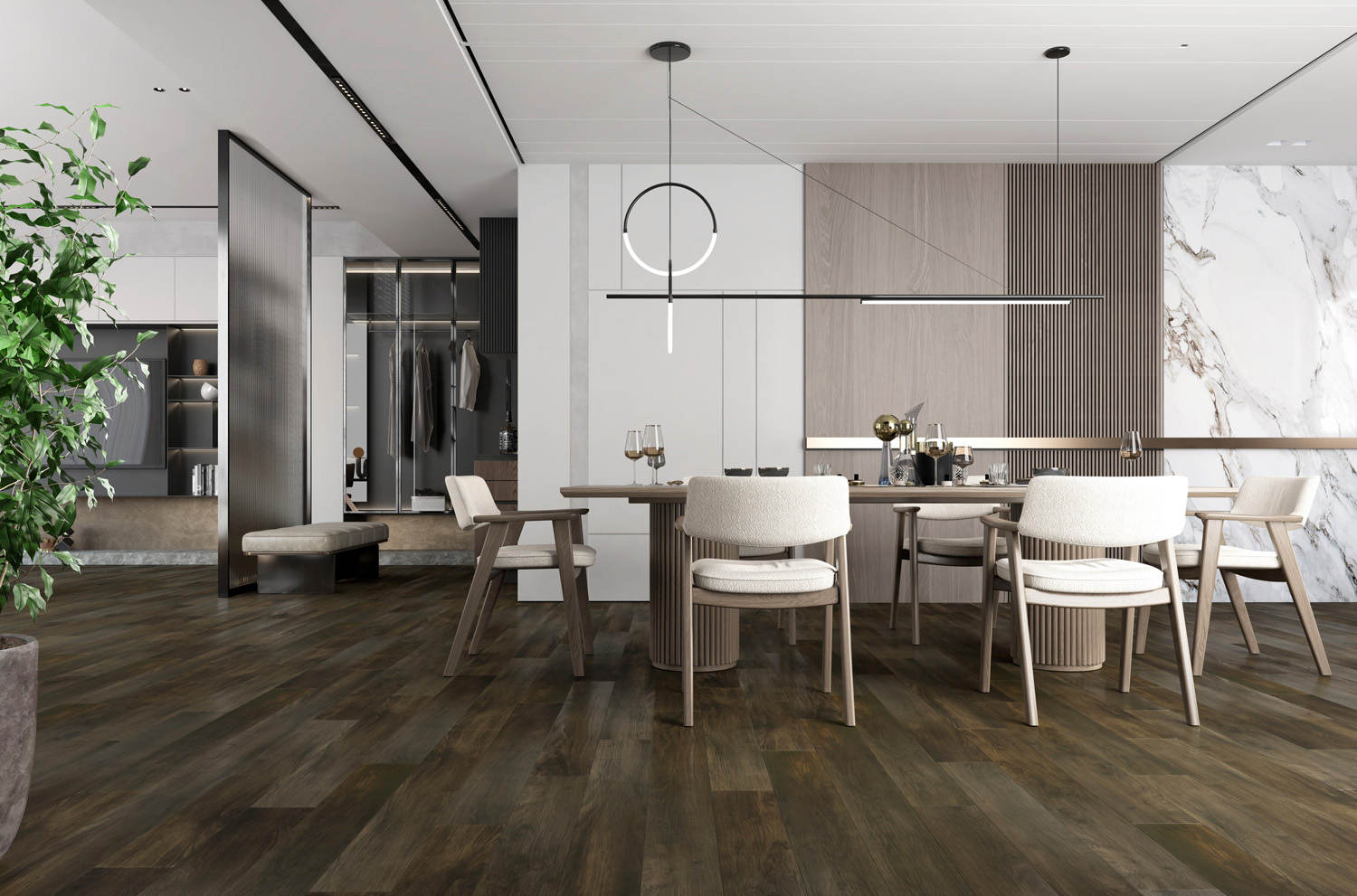 Делали ремонт в квартире с черновой отделкой от застройщика и самым простым оказался выбор напольного покрытия – кварцевый ламинат Fargo. Узнала о нем из просмотра роликов на YouTube и сразу влюбилась – молотый камень, добавляемый в состав, делает кварцевый ламинат особенно прочным, SPC-плита не впитывает воду и не набухает, есть варианты под дерево и под камень, большой выбор цвета.
