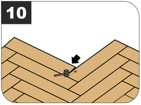 7.6.1 Соединяйте плашки между собой с помощью системы Click System 5-го поколения. Для подбивания используйте резиновый молоток. Работайте по направлению от угла к концу плашки по короткой стороне.