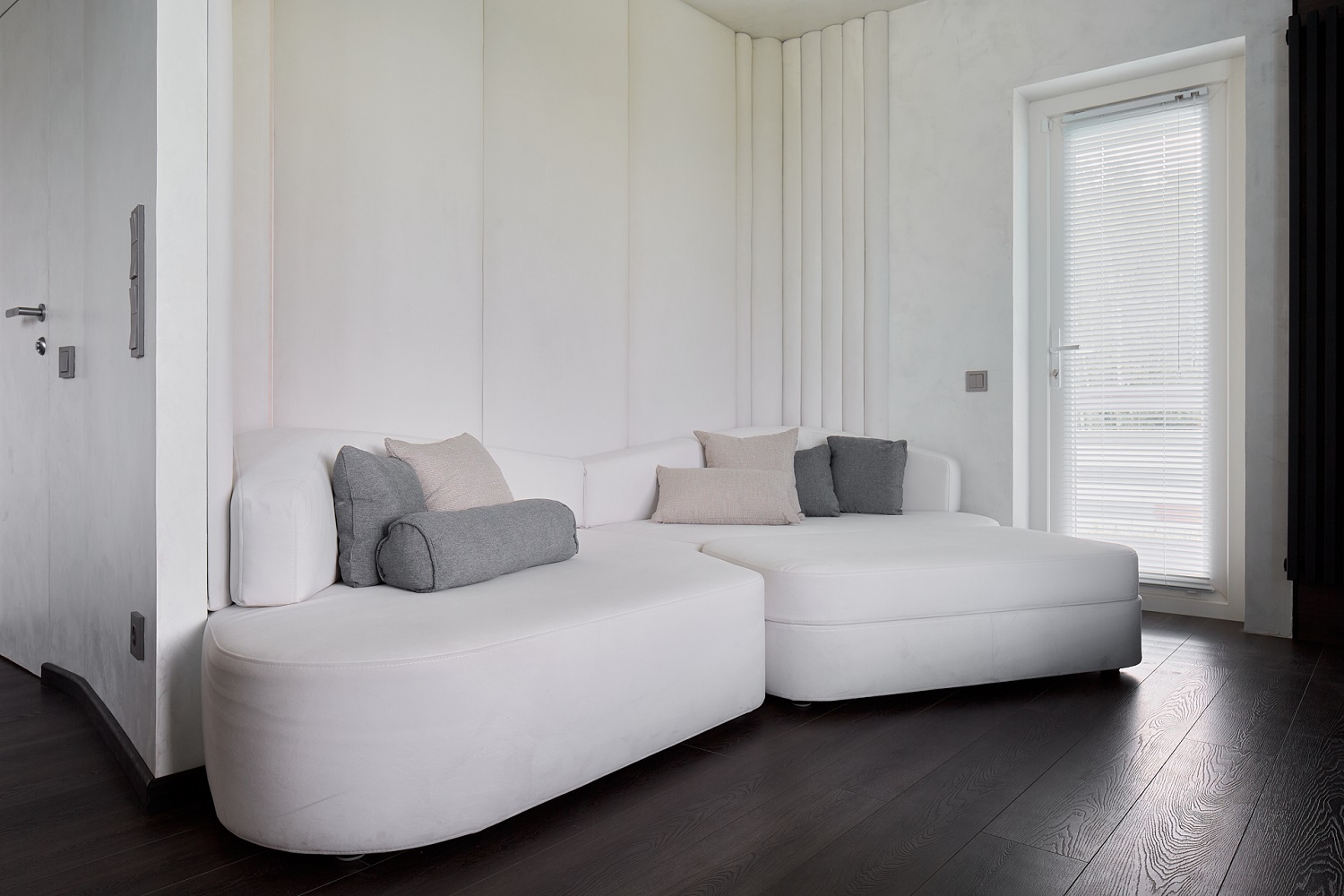 Дизайн-студия BALKA.Studio воссоздали на кухне героев выпуска атмосферу бизнес-класса самолета — получился эргономичный интерьер с обтекаемыми формами, высоким уровнем сервиса в зоне готовки и пространством для мягкой посадки в зоне отдыха.